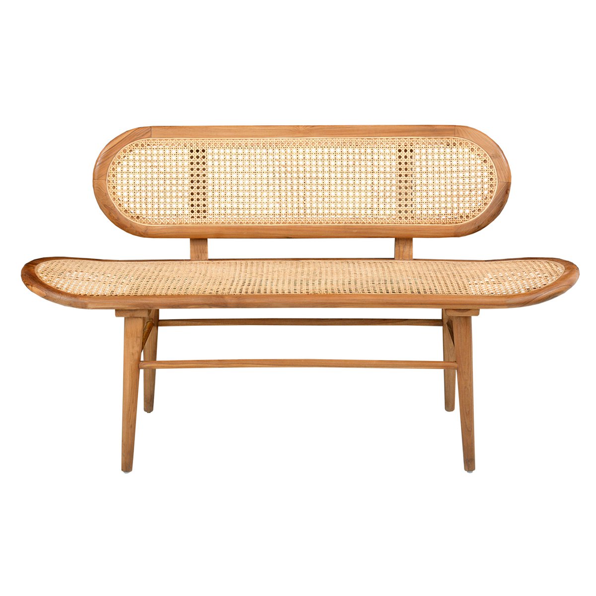Met snel hernieuwbare grondstoffen kan het niet fout gaan. Deze bank van ongepeld rotan is handgemaakt en past zich dankzij zijn warme en exotische charme aan elke woonruimte aan. Gecombineerd met fabrieksdesign of vintage, antiek en rustiek past deze zitmeubel altijd. In het woongedeelte biedt de bank een comfortabele zitplaats voor uw gasten en is een sfeervol accessoire. In grote hallen of gangen, op het terras of in de wintertuin biedt deze zitbank met zijn prachtige natuurlijke uitstraling een plek om te ontspannen. Grote bank van rotan, teakhouten frame, zithoogte 46 cm.