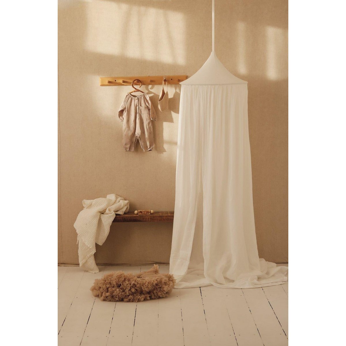 Comfortabel, casual, relaxed. Uitputtende expedities en missies kunnen niet eeuwig duren. Voor rustiger spelen en ontspannen is een klein, gezellig hoekje nodig. Ook het vertellen van verhalen heeft focus en rust nodig. Gebruik hem als interieurdecoratie, als overkapping, draagbaar of permanent de overkapping werkt in veel situaties, ook voor het ophangen van slingers of speelgoed, of zelfs als klamboe op uw terras! Boho is een artistieke bohemien stijl, geleid door comfort, zomer en vrijheid. Je vindt hier en daar wat etnische verwijzingen, een aantal bloemen waar mogelijk, en natuurlijkheid – een knipoog naar Moeder Natuur. Combineer de overkapping met kussens, matten en slingers! Eenvoudig en natuurlijk van vorm, deze luifel is robuust, gemaakt van crèmekleurige katoenen stof. Dankzij de handige bandjes is hij gemakkelijk af te doen en te wassen. Er zitten ook katoenen riemen aan de binnenkant van de overkapping waarmee je een extra ornament of lamp kunt ophangen. Katoenen stof, rand. Stof: 100% OEKO-TEX® katoen. Wastemperatuur: tot 30°C. Diameter rand: 50 cm. Lengte luifel: 240 cm plus riemen. EAN: 5906508781166