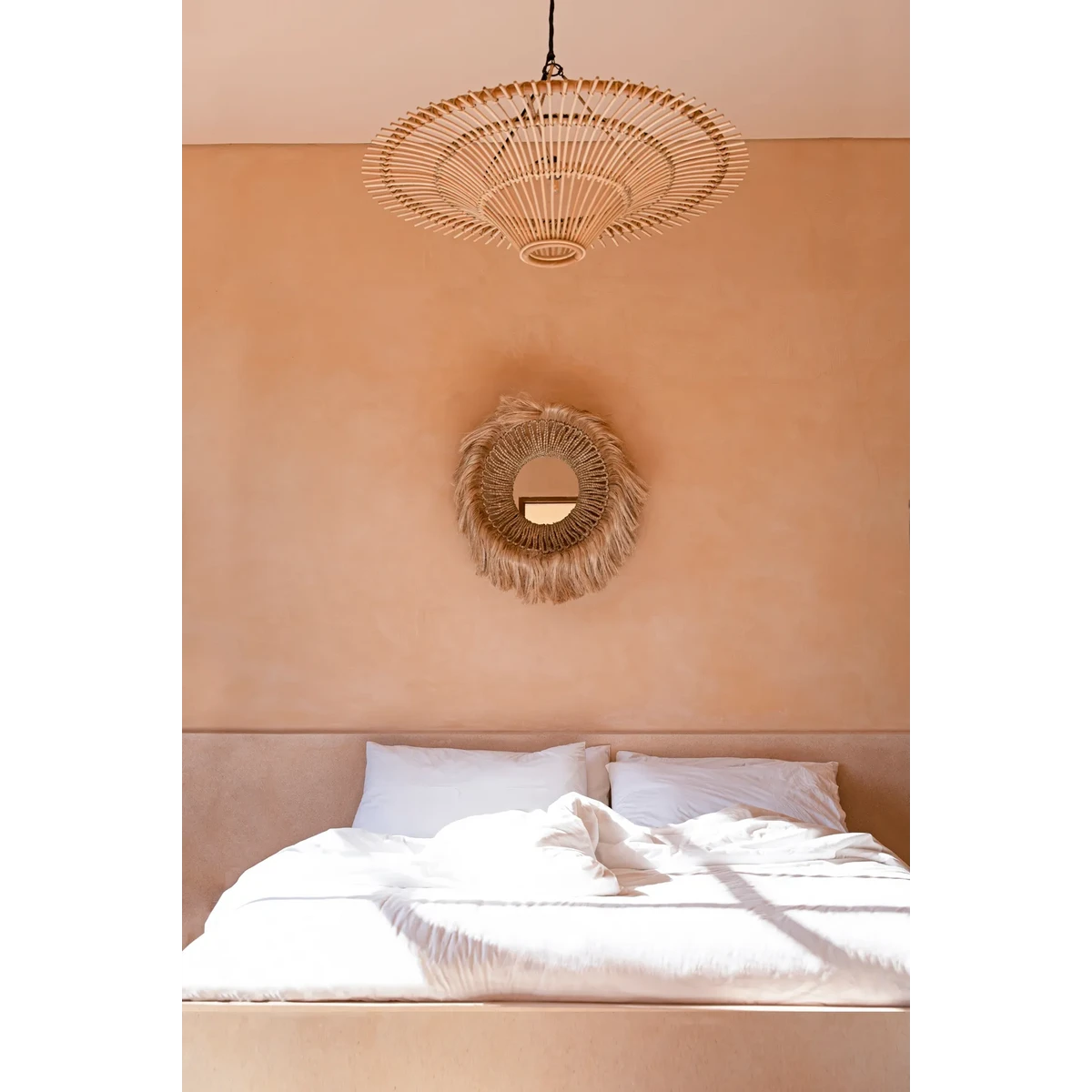 Deze prachtige komvormige spiegel is een unieke combinatie van natuur en elegantie. Deze betoverende spiegel is handgemaakt van duurzaam geproduceerd abacagras en voegt stijl en diepte toe aan elk interieur. De warme tinten van het gras, dat prachtig rond het frame valt, maken dit een ideaal meubelstuk voor zowel moderne als meer traditionele ontwerpen. Breng uw interieur naar een hoger niveau met deze prachtige milieuvriendelijke spiegel en vier de schoonheid van de natuur in elke weerspiegeling.