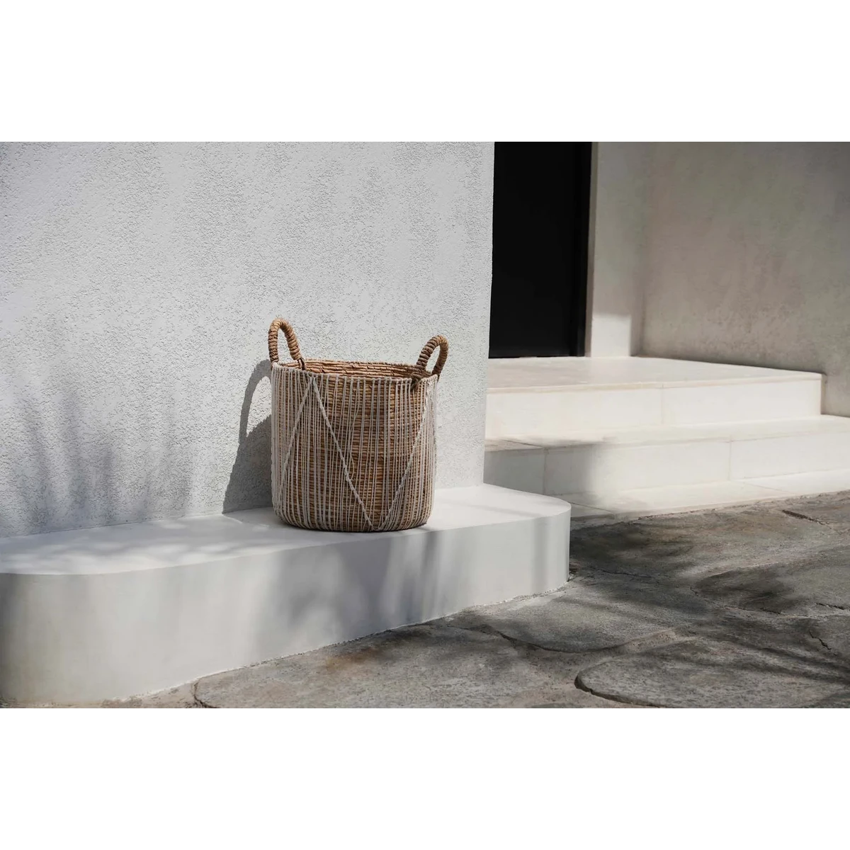 Kijk eens naar deze mand! Het is moeilijk om het niet te doen, omdat het een kunstwerk is. De mand zelf is gemaakt van sterk, duurzaam zeegras dat een prachtige natuurlijke uitstraling en kleur heeft en jarenlang meegaat. Het is versierd met een ingewikkeld patroon van wit katoen. Ideaal voor tijdschriften, speelgoed of zelfs een mooie potplant. En het beste: er zijn drie maten beschikbaar!