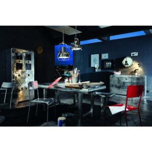 Dit dressoir is de juiste keDressoir aluminium lookuze voor alle fans van bijzondere woonideeën en futuristische ontwerpen. Het design dressoir in aluminiumlook is een echt pareltje in de ware zin van het woord. De romp van mangohout en MDF is volledig bedekt met aluminium, wat het dressoir een bijzondere uitstraling geeft. Dankzij het aluminium beslag is het gehele dressoir gespiegeld, waardoor de leefruimte groter en opener lijkt. De industriële stijl wordt onderstreept door een bijzonder patroon van decoratieve schroeven dat over deuren en lades loopt. De aluminium fittingen en sierschroeven doen denken aan de moderne vliegtuigbouw en futuristische science fiction-ideeën. De zilveren handgrepen onderscheiden zich van het verder glanzende materiaal door hun matzilveren look. Met dit dressoir haal je onderscheidend fabrieksdesign in huis en maak je een stijlvol statement in elke woonruimte. Twee deuren en drie lades bieden veel gesloten opbergruimte. Vakken achter de deuren 50x35x39 cm, lade binnenmaat BH 34×17 cm