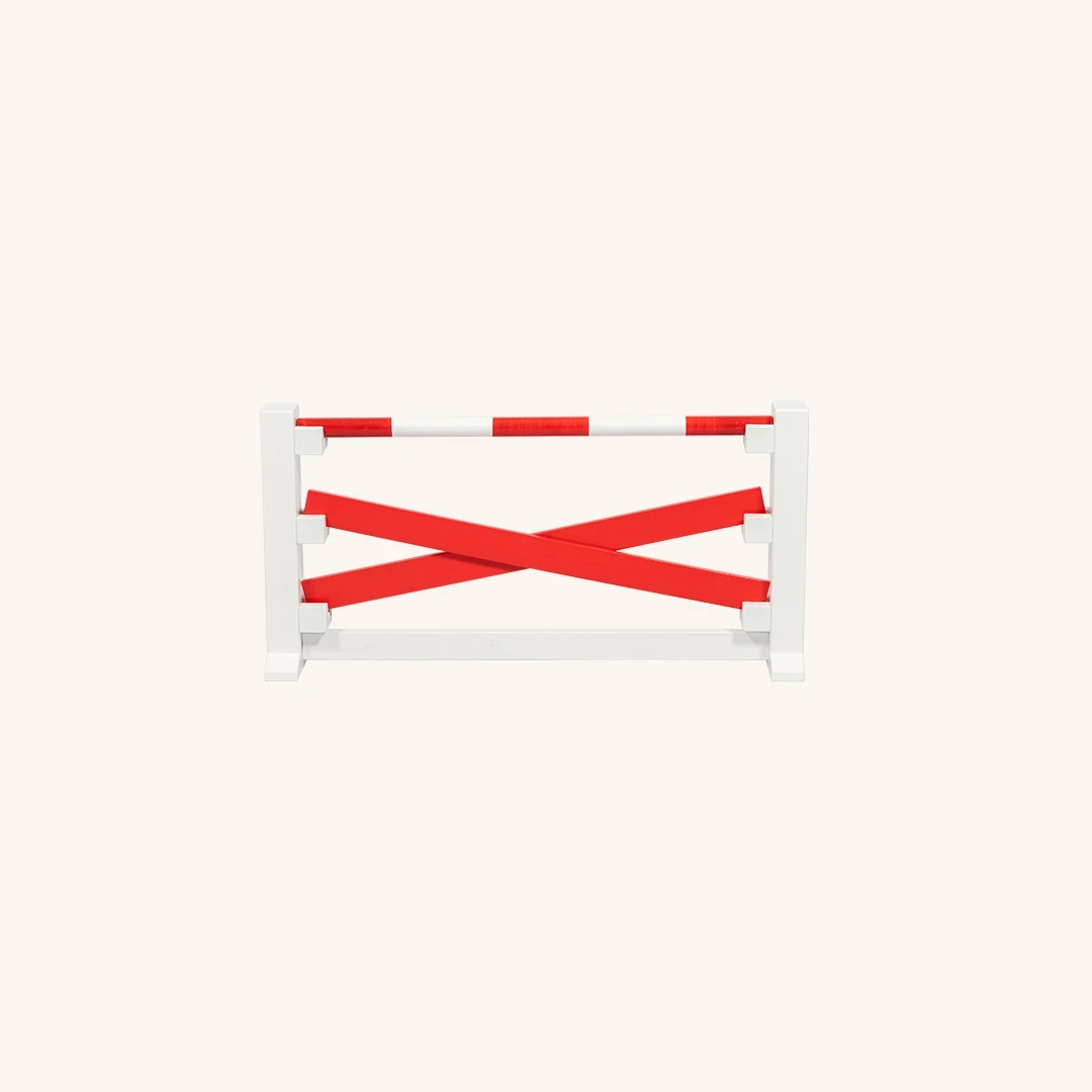 Laat de kleine knuffelpony’s kennismaken met spannende nieuwe uitdagingen met deze klassieke groen-witte showjump met gekruiste balken. Perfect om creativiteit te stimuleren en de speeltijd te verlengen, is deze jump ontworpen om jonge fans te inspireren terwijl ze nieuwe avonturen creëren voor hun knuffelbare metgezellen. Deze showhindernis is gemaakt van hoogwaardig FSC-gecertificeerd hout en is niet alleen tijdloos, maar brengt ook een vleugje realisme in het spel, waardoor kinderen een levensechte ponyshow kunnen ervaren. Het eenvoudige maar effectieve ontwerp stimuleert fantasierijk, open spel en geeft kleintjes de vrijheid om hun eigen manieren te bedenken om met hun knuffelpony’s om te gaan. Om de perfecte hindernisbaan te voltooien, combineer je deze showhindernis met twee Cavaletti-hindernissen en een klassieke hindernis, wat eindeloze mogelijkheden biedt voor het opzetten van nieuwe parcouren en het organiseren van spannende ponywedstrijden. Of het nu gaat om een leuke trainingssessie of een groot pony-evenement, deze showhindernisset voegt een laag authenticiteit, spanning en eindeloos plezier toe aan elke speeltijd.