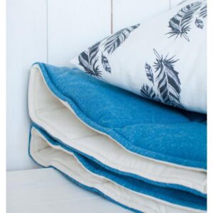 Een comfortabele mat maakt deel uit van de inventaris van elke avonturier; hij is ook handig tijdens lange gesprekjes in tipi’s, en komt goed van pas als boot bij het oversteken van rivieren,De gewatteerde mat doet dienst als heerlijk comfortabel vloerkleed in een kinder kamer en kan dienen als aanvulling op een tent, overkapping of wanddecoratie . Het kan ook in de tuin of bij een picknick worden gebruikt. En het beste is om er al vanaf jonge leeftijd op te rollen en met speelgoed te spelen! Zacht gewatteerd matje, jeans aan de ene kant en beige aan de andere kant. Het doet het perfect als klein kleedje bij het kinderbedje, als speelkleed voor de baby of als onderdeel van de tipi-set. Duurzaam, dubbelzijdig, gevuld met dikke isolatievoering. Stof: 100% OEKO-TEX® gecertificeerd katoen. Wastemperatuur: tot 30°C. Afmeting: 120×120 cm +- 3 cm, dikte: 3 cm.
