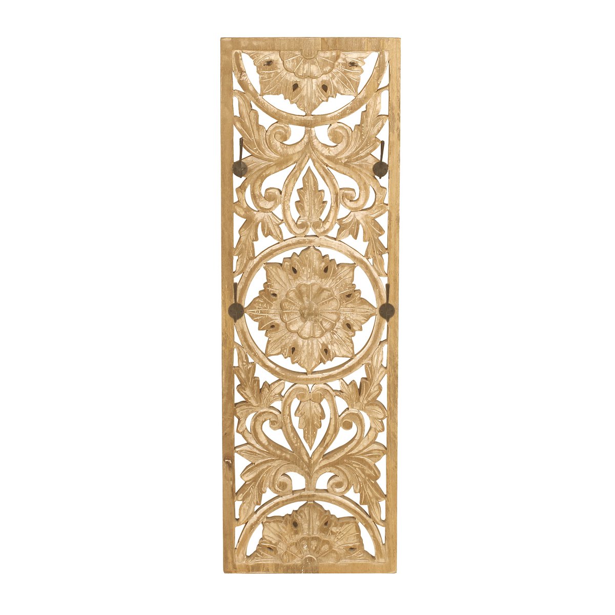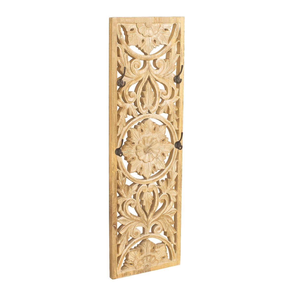 Dit moderne kledingpaneel van mangohout is een blikvanger in elke entree. 4 dubbele haken bieden voldoende ruimte voor jassen, tassen en andere diverse kledingstukken. Optisch maakt de wandkapstok indruk met zijn oosterse stijl en gedetailleerd houtsnijwerk. Hier is elk onderdeel een uniek stukje waarde. Met gedetailleerd snijwerk.