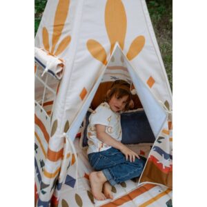 Er was eens een mooie prinses die… Boooooring! Mam, we willen avonturen, actie en lange reizen! Het spelen van onverschrokken krijgers is een onderdeel van een gelukkige jeugd. Wat is spannender voor jonge sensatiezoekers? De kamer de kamer van uw kind verandert in een echt fort! De Native Vibes zijn alles wat een Grote Leider zich kan wensen voor zijn dappere stam. Eenvoudige karakteristieke kleuren roepen het gevoel van het ‘oude’ Amerika op, wat inspireerde om de collectie te creëren. Zachte katoenen gewatteerde mat, perfect als klein kleedje bij het kinderbedje, als speelkleed voor de baby of als onderdeel van de tipi-set. Duurzaam, dubbelzijdig, gevuld met dikke isolatievoering. Stof: 100% OEKO-TEX® gecertificeerd katoen .Wastemperatuur: tot 30°C.Afmeting: 120×120 cm +- 3 cm, dikte: 3 cm.