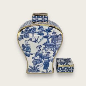 De vaas is handgeschilderd in een klassiek blauw-wit kleurenschema, dat verfijnd vakmanschap en een tijdloze uitstraling weerspiegelt. Het ontwerp put inspiratie uit de rijke geschiedenis van zowel de Chinese als de Europese porseleintradities.