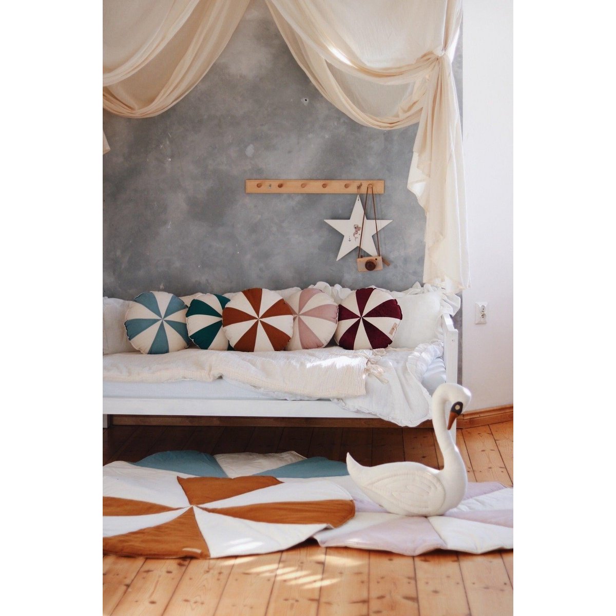 Al het plezier, de circusstunts en het harde lachen kunnen ervoor zorgen dat je soms duizelig wordt! Maar als je even wilt uitrusten of een dutje wilt doen, kun je dat het beste op een zacht, knus kussen doen… Sierkussens van zijn mooi, zeer comfortabel en praktisch. Ze vormen een mooie decoratie van de kinderkamer, maken het uiterst gezellig en creëren perfecte omstandigheden voor dutjes en uiteraard spelen! Het kussen maakt deel uit van onze levendige collectie met circusthema, speciaal gemaakt om elke kinderkamer of slaapkamer te verlevendigen. Maak uw eigen kussencomposities van de beschikbare patronen! Dit patchwork linnen kussen in snoepvorm is stevig genaaid van hoogwaardig linnen met een opvallend karamel-wit patroon geïnspireerd op een pretpark. Gevuld met hoogwaardige anti-allergische siliconenvezelbolletjes. Je kunt hem veilig wassen in de wasmachine, de vulling blijft luchtig en elastisch. Stof: 100% linnen, 100% katoen, beide OEKO-TEX® gecertificeerd. Afmetingen: 39 cm x 39 cm. Wastemperatuur: tot 30°C.