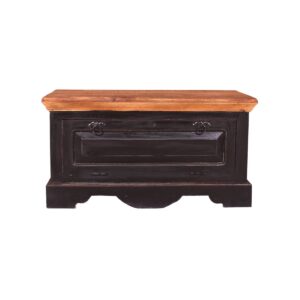 Deze 2-kleurige antieke schoenenkast zorgt voor orde in het leven van uw schoenen. De klep, voorzien van 2 ringgrepen, kan bovendien gemakkelijk door kinderen worden geopend, die de schoenenladekast ook als bankje kunnen gebruiken terwijl ze hun schoenen aantrekken. Als de ladekast in de hal niet als zitplaats wordt gebruikt, kan de afdekplaat ook prachtig worden versierd. Achter de vouwdeur is er op twee niveaus voldoende ruimte voor sportschoenen, sandalen, pantoffels, sneakers, kinderschoenen enz. De bewust rustieke, antieke flair komt bijzonder goed tot zijn recht in elke hal en gang. Vakmaat BT 69×24 cm, onderkant 11 cm hoog, bovenkant 12 cm hoog, 1 losse plank, voor ca. 6 paar schoenen