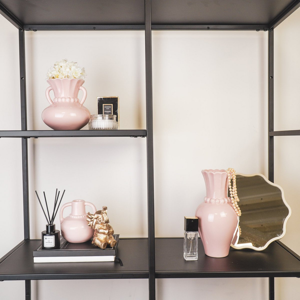 Vaas met de parelsnek – je kunt nooit genoeg vazen hebben! Deze kleine vaas kan gemakkelijk worden gecombineerd met andere vazen of kandelaars. Met zijn prachtige parelkhals heeft deze pastelkleurige kruik vaas een echt uniek uiterlijk. Belangrijkste kenmerken: Gemaakt van: DolomitedImensions: 14x14x15cm Styling Tip: De roze gekleurde jug-vaas ziet er ook geweldig uit op een dienblad met andere kleine vazen en kandelaars.
