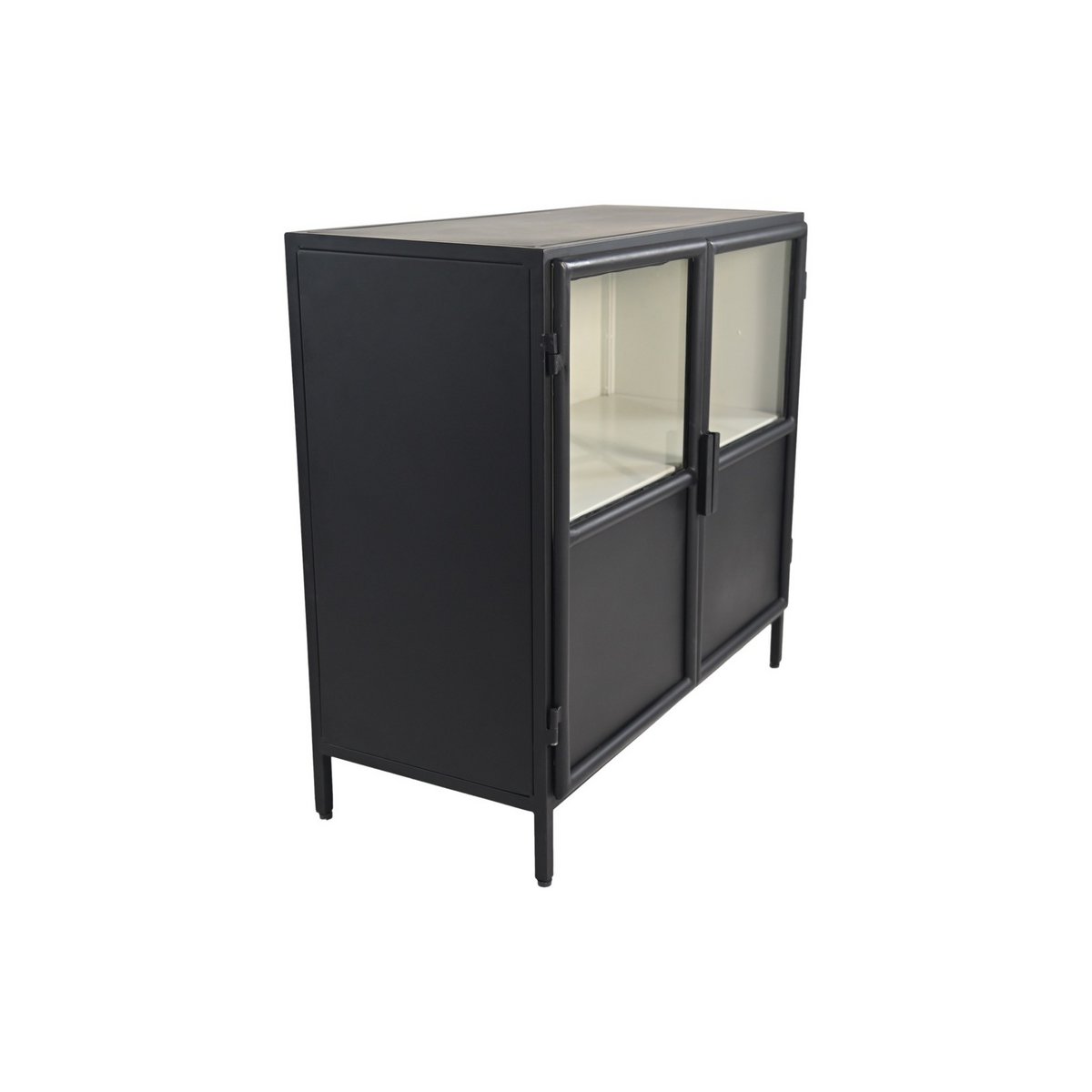 Vitrinekast Bronx Laag 2 Deur-90x40x85-Zwart/Grijs-Metaal